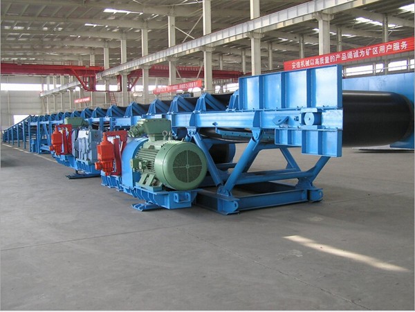 1、除轉(zhuǎn)載機(jī)與尾機(jī)有一搭接長(zhǎng)度可供工作面快速推進(jìn)外,通過(guò)收放膠帶裝置和貯帶裝置可使機(jī)身得到伸長(zhǎng)和縮短,從而能較有效地提高順槽運(yùn)輸能力,加快回采和掘進(jìn)速度。